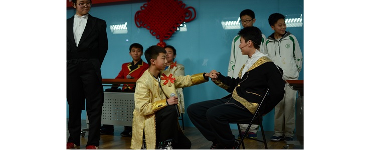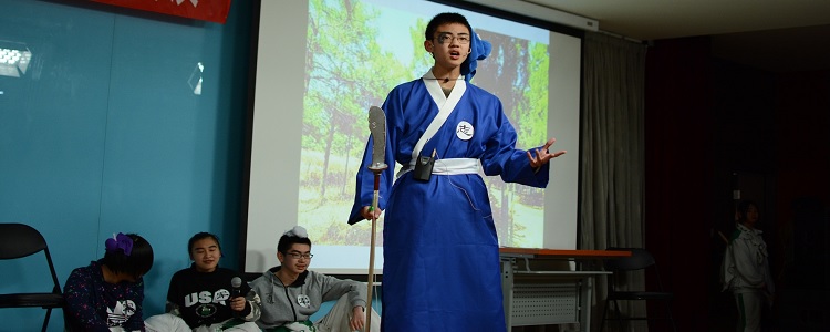 初三(5)班带来著名作家老舍先生的《茶馆》。演员激昂的表演和跌宕起伏的情节,把在场观众带到了那个久远的年代,见证遥远的历史。