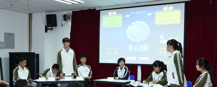 比赛结束后,曾为专业辩手的王庆超老师从辩论技巧方面为大家做了点评,朱建宏校长从人生发展观的角度为学生留下寄语。最后,经过评委们公正的评判,高二(2)班摘得桂冠,本届辩论赛在学生们热烈的掌声中落下帷幕。