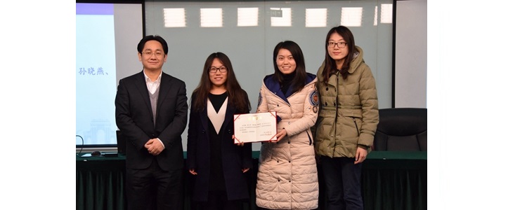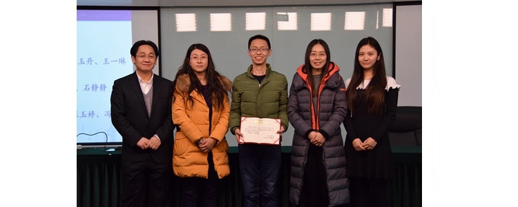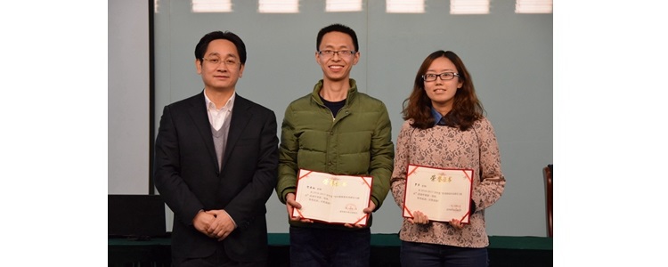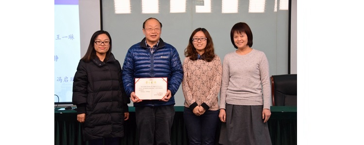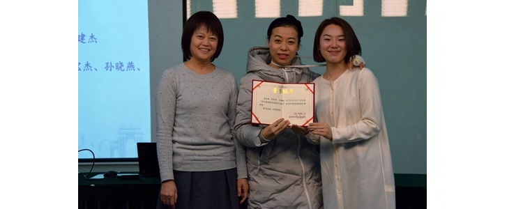 陈卫东副主任(左1)和崔启发主任(右1)为奥森校区获得三等奖教师(左起:刘会宾、娄赛赛)颁奖