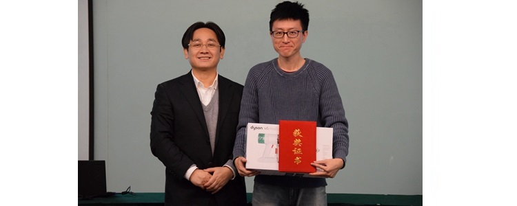 朱建宏校长(左)为奥森校区获得一等奖教师常昊男(右)颁奖