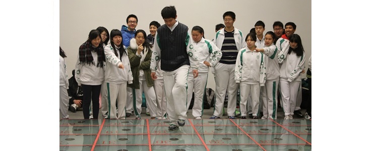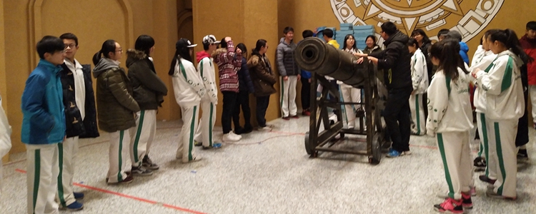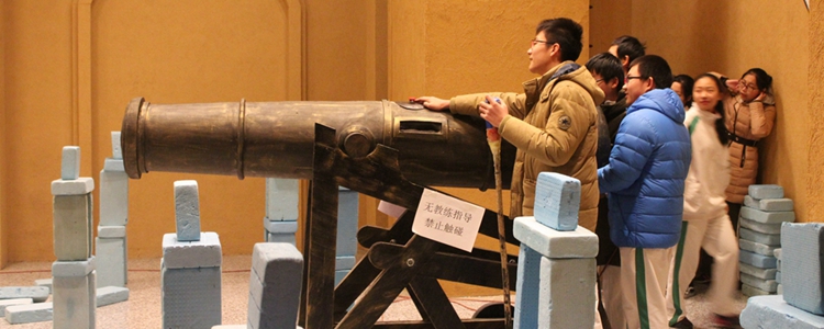 炮战馆——参加挑战的同学被分成两个小组,每个小组的队长要爬上一面高台,面对自己的组员发表一份“国王的演讲”,然后组员在队长的带领下,利用“轩辕大炮”去攻击对方的“城墙”来获取积分,得分高者获胜。