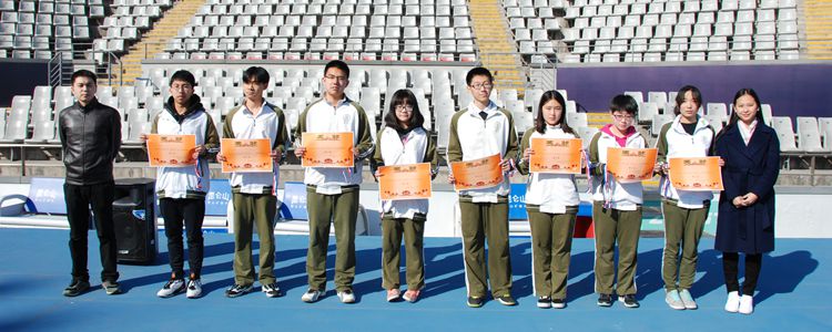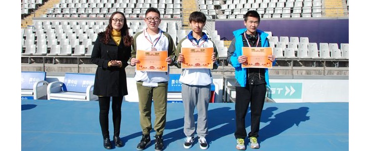 张姝敏副校长(左1)为男子单打获奖学生颁奖