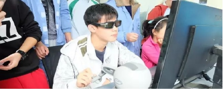 学生们体验机械臂遥操作技术