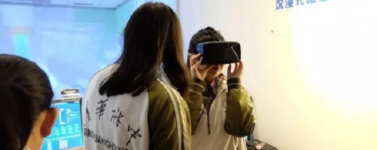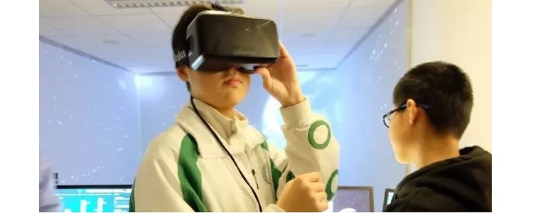 学生们体验虚拟现实技术