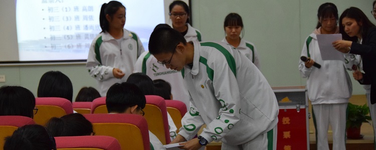 2016年澳门网上博彩将台路校区第一届团委学生会换届选举工作从9月开始进行至今,获得了初三年级老师和同学的大力支持。共有40余名初三学生自愿报名参加团委学生会干部的选举。经过第一轮的面试,结合各班班主任的意见,共有23名同学脱颖而出并在大会上发表竞选演说。他们有的沉稳内敛,有的大气潇洒,有的才艺满满,博得现场阵阵掌声和喝彩。