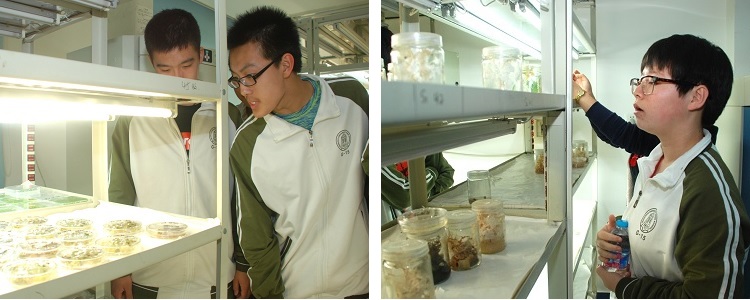 学生参观植物组织培养人工气候室