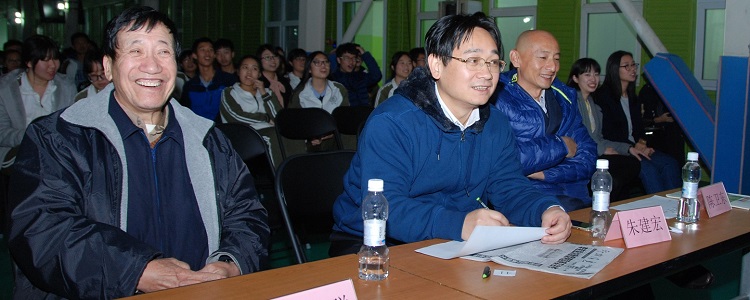 评委席(左起:刘继群老师、朱建宏校长、陈卫东副主任)