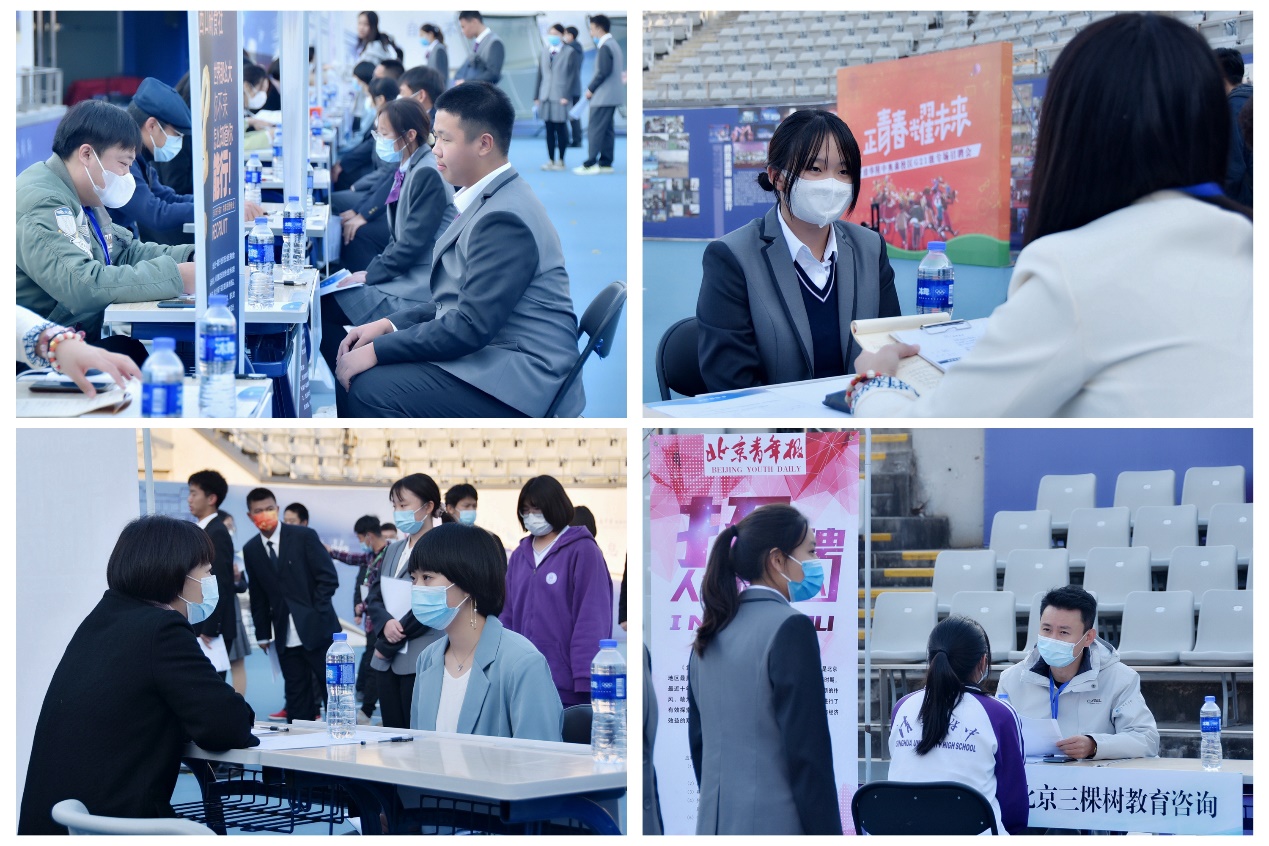 来自北京京创律师事务所、北京青年报、中国平安人寿保险股份有限公司、北京三棵树教育咨询有限公司、丝芙兰化妆品销售有限公司等十余家不同公司的企业代表为学生们进行模拟面试。学生通过与真正企业的人力资源沟通,大致了解社会热门职业代表种类与需求。体验模拟面试,寻找自己喜欢的职业,了解到自己想从事行业或职位对应聘者一个客观的要求,以此为目标规划自己大学与中学的道路选择。