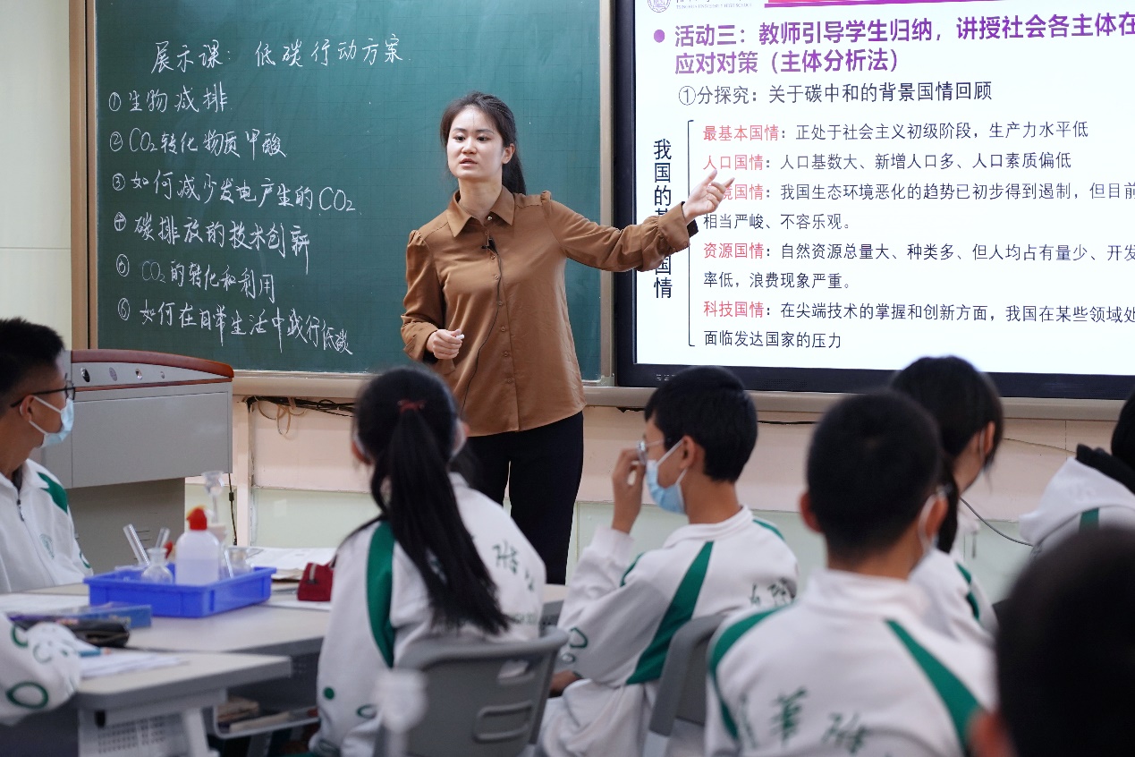 为了学生的全面发展,提升学生课堂的参与度,促进学校教育教学的进一步改革与发展,澳门网上博彩将台路校区初三年级化学组在北师大胡久华教授团队的指导下,经过多次备课讨论,于12月14日和21日在将台路校区C402教室,通过7次课程顺利实施了跨学科项目式学习——《低碳行动》,受到了全校师生的广泛关注。
