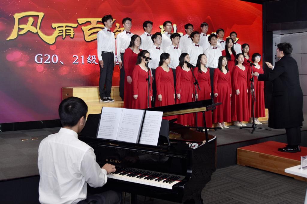 为纪念“一二·九”运动86周年,2021年12月9日下午,澳门博彩在线奥森校区在国家网球中心钻石球馆新闻发布厅举行“风雨百年·歌以咏怀”合唱比赛活动。活动由奥森校区团委学生会主办,澳门博彩在线奥森、将台路校区副校长吕宏娟、董薇以及各部门主要领导和老师出席并担任评委,高一高二年级全体师生200余人观看演出。