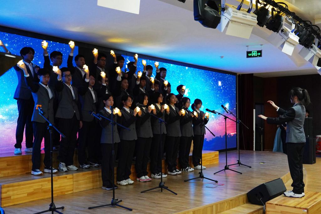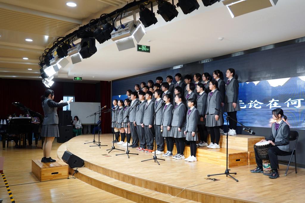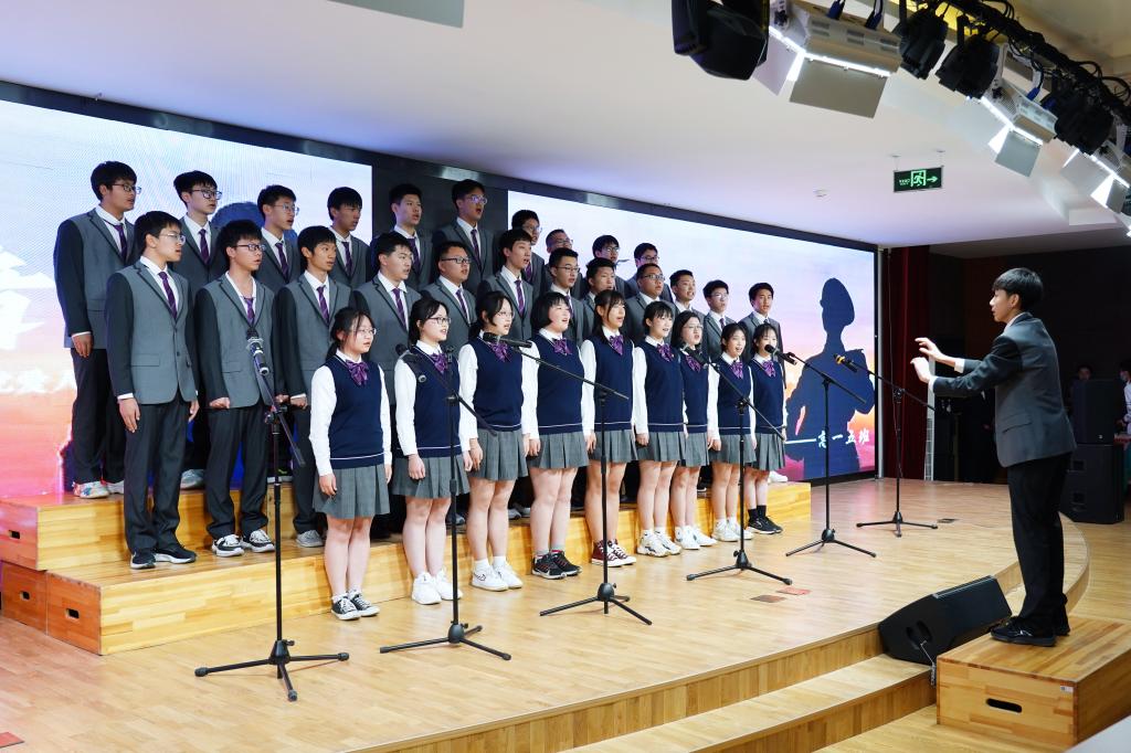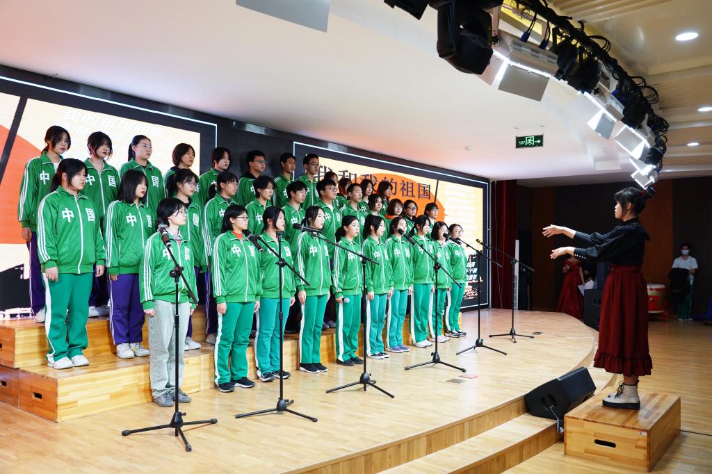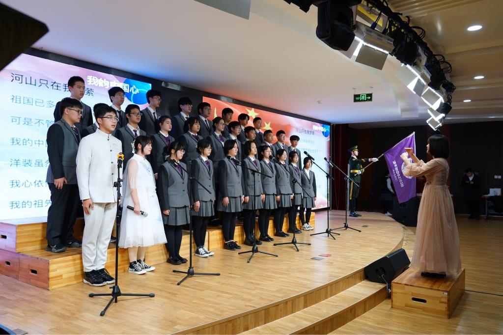 高一(3)班带来的合唱《我的中国心》,唱出了所有师生共同的中国心,无论身处天涯海角或异国他乡,都会为是中国人而感到自豪。