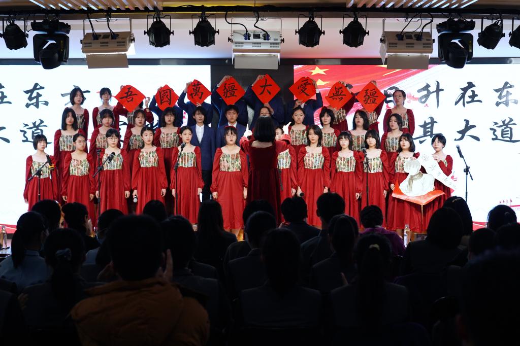 最后,朱建宏校长总结讲话。他指出,艺术教育能够增强学生的自信心,帮助学生今后从容地看待生活中遇到的困难和坎坷。强调要引导学生弘扬和传承“一二·九”运动精神,倡导青年学子勇于担当,将清华人始终如一的家国情怀与责任传承下去,为实现中华民族伟大复兴的中国梦而不懈奋斗。
