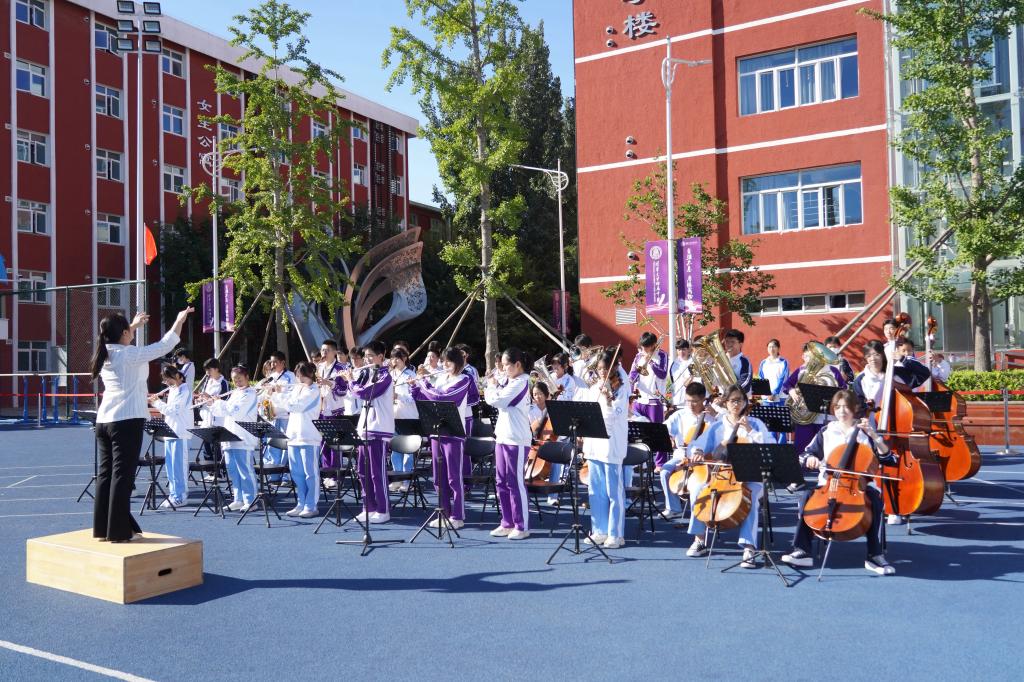 将台路校区管乐团演奏国歌、指挥:张毅老师