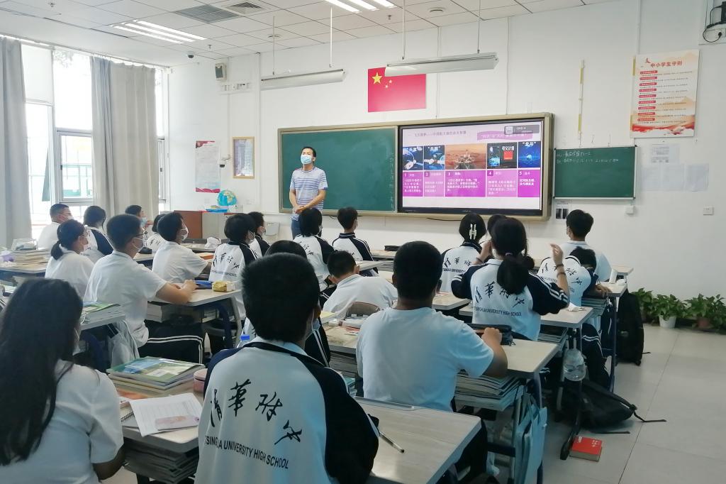 王一老师的科普讲座从飞天圆梦、太空历险和太空之约三方面展开,首先通过航天视频带领师生了解中国飞天梦,从敦煌莫高窟的飞天壁画,到多个航天器的命名由来,彰显出古人对于神秘太空的美妙想象;而后讲解新中国的载人航天工程的“三步走”战略,展示中国航天航空事业的伟大成就;最后,介绍了国外的太空旅行和中国未来的太空之约设想,希望在同学们能认真学习,争取在将来为我国航天事业奉献力量。现场反响热烈,同学们纷纷踊跃发言,和王老师交流探讨。