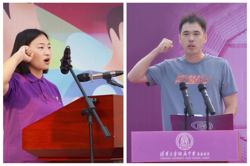 随后,王颖辉老师和薄飞老师代表两校区裁判员宣誓,承诺在裁判过程中秉持公正、公平、公开的原则,做出最公正的裁决。奥森校区高三(3)班赵亮宇、将台路校区高二(8)班罗瑀瑄代表运动员宣誓,表示所有运动员一定遵守赛场规则,赛出最好的自己。