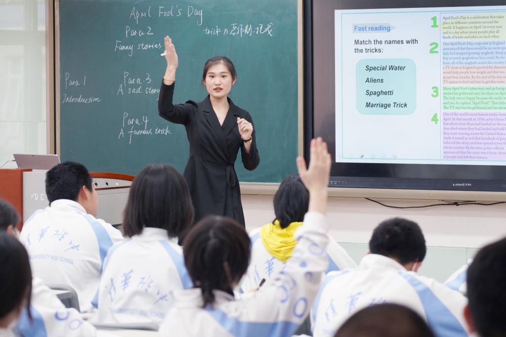 英语李婉妮老师:“本课邀请学生上台发言,对锻炼学生口语能力和提升自信是一大突破,鼓励学生用英语大胆地发表看法。”