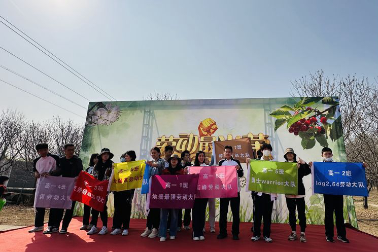 澳门博彩在线将台路校区高一年级、高二年级全体学生分别于2023年3月31日和4月27日前往顺义喜邦农场参加劳动教育实践活动。到达农场后,各班分组发挥创意制作班旗。开耕仪式上,年级组长讲话,希望学生们可以用心参加活动、体验劳动,增强劳动本领。随后,各班班主任给本班劳动大队进行授旗鼓舞士气。
