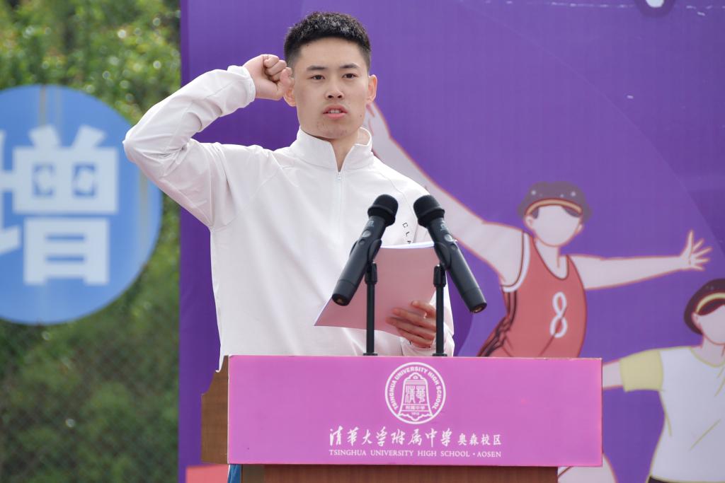 随后,张玉婷老师和张仕星老师代表两校区裁判员宣誓,承诺在裁判过程中秉持公正、公平、公开的原则,做出最公正的裁决。奥森校区高二(3)班师嘉良、将台路校区高二(8)班罗瑀瑄代表运动员宣誓,表示所有运动员一定遵守赛场规则,赛出最好的自己。