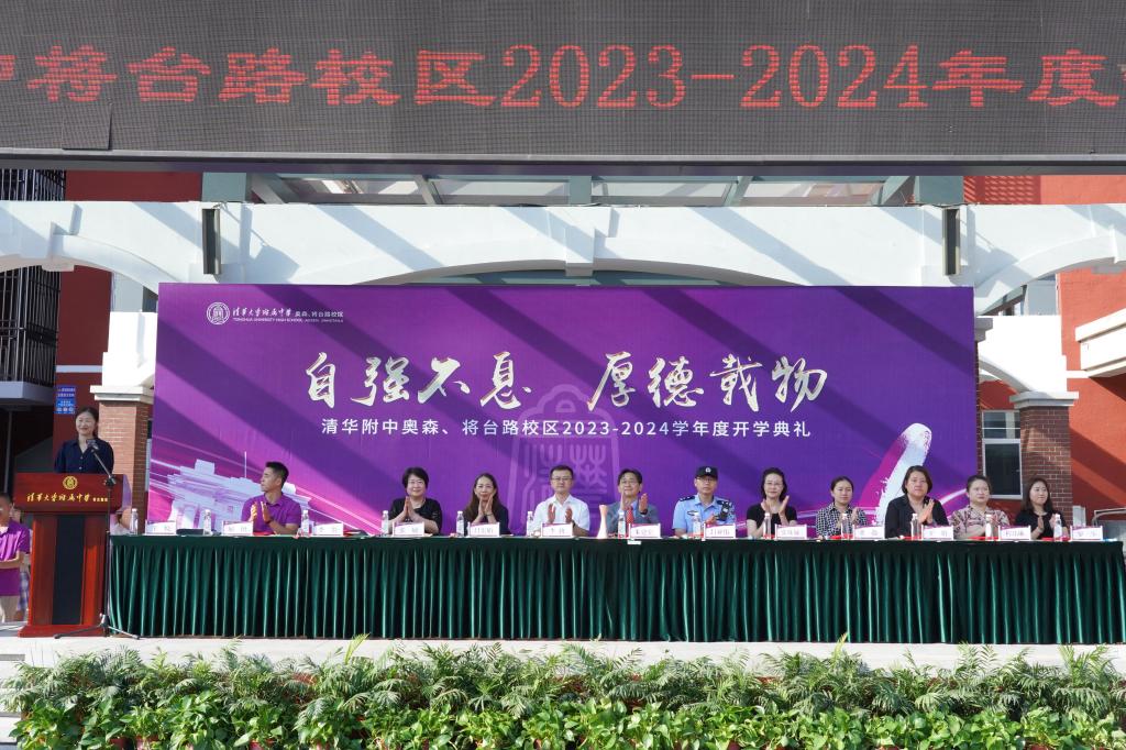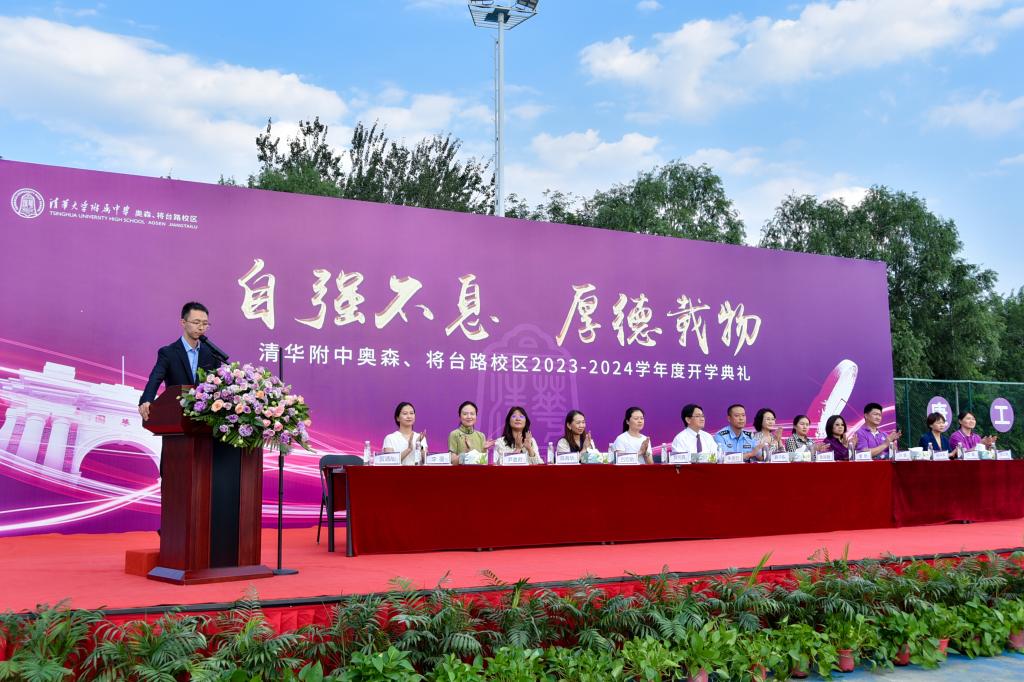 8月31日下午及9月1日上午,澳门博彩在线奥森、将台路校区分别在两校区操场举行2023—2024学年度开学典礼。朝阳区将台地区办事处主任李勃、将台地区派出所副所长吕亚伟受邀出席将台路校区开学典礼。奥运村社区派出所副所长聂子栋、奥运村街道社区建设办公室副科长魏悦爽受邀参加奥森校区开学典礼。澳门博彩在线奥森、将台路校区执行校长朱建宏,副校长张姝敏、吕宏娟、董薇及两校区党政班子成员出席两校区开学典礼。两校区全体师生约1700人参加典礼。