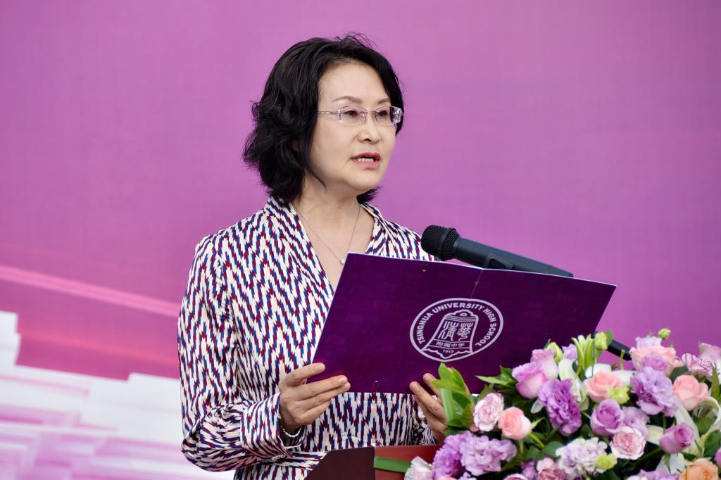 将台路校区范秀姣老师代表教师发言。范老师回顾了毕业生在学校为梦想拼搏的点点滴滴,鼓励学生们玩好也学好,在任何事情上都可以展现出“知足而知不足,认输而不服输”的气魄和胆量,发现自我,不断进取。