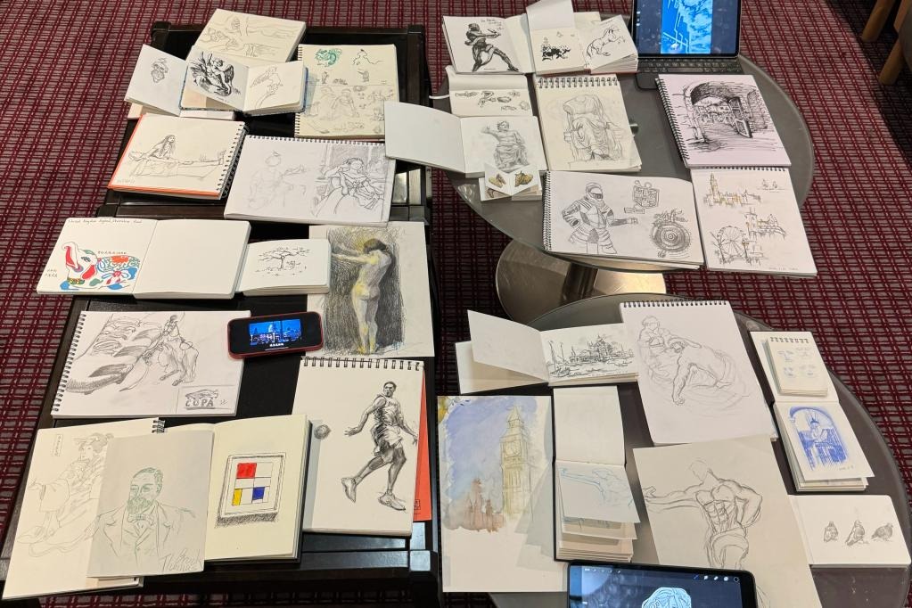 研学旅程中,学生们每天都会将当天的灵感或印象深刻的景象绘制成画。在当天的行程结束后,老师们会逐一指导,集中进行绘画作品的点评与交流,互相学习、共同成长,力求让学生们将所学知识融会贯通,运用自如。
