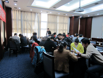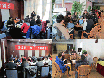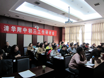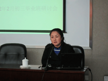 大会首先由朱培主任做期末成绩分析,并简要总结了期末考试中所反映出的教学方面的优势和不足,为下一阶段工作提出建议。随后,各班级工作组在班主任的带领下开展了积极有效的班级会诊,进一步落实“个性化辅导”的任务。初三各个备课组结合期末考试,针对反映出的问题、下一阶段的教学工作安排和解决存在问题的具体措施进行深入研讨。初三各个学科的备课组长在大会上汇报了各组研讨的成果。