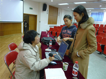 王殿军校长讲话 芦咏莉老师(左1)在报告会后接受青年教师提问
