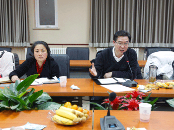 刘波副主任((中)主持会议 罗健老师(左)做工作报告