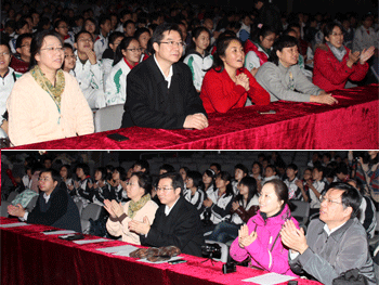 2011年12月30日,由澳门博彩在线艺术中心主办,校团委学生会协办的“澳门博彩在线迎接2012新年文艺演出”大型联欢会在附中报告厅隆重举行。初中和高中的同学分上、下午两场观看了节目。校长王殿军为演出致辞,他希望同学们在未来的岁月中,能够以积极的心态去接纳社会、融入社会、引领社会、改造社会,做一个既有知识又有文化、既有能力又有涵养的人,希望同学们继续为澳门博彩在线的明天再创辉煌!党委书记方妍、副校长杜毓贞、施平、副书记周兆玉等校领导观看演出。