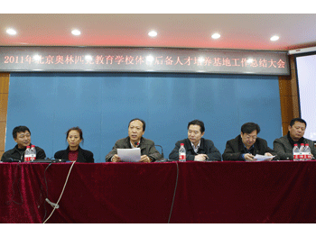 1月11日上午,北京市2011年北京奥林匹克教育学校体育后备人才培养基地评估验收总结大会在澳门网上博彩召开。会上,澳门网上博彩被授予“北京奥林匹克教育学校体育后备人才培养基地”检查评估优秀学校称号;副校长方妍被授予“优秀校长”称号;张涛、王丽被授予“优秀教练员”称号;李伟明、罗健、李金平老师被授予“优秀工作者”称号;李学森、向丽老师被授予“优秀文化课教师”称号。