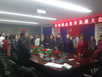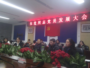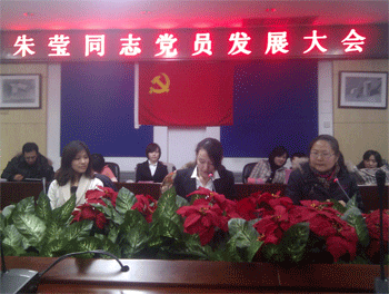 1月13日下午,澳门网上博彩语文外语党支部召开朱莹同志党员发展大会,澳门网上博彩党委书记方妍、副书记周兆玉,语文外语党支部的党员和部分积极分子近40人出席大会,会议由党支部书记邱晓云老师主持。