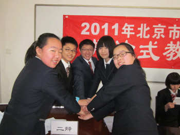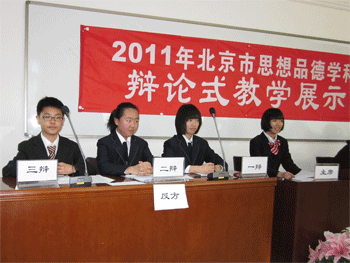 12月22日下午,2011年北京市初中思想品德学科辩论赛市级决赛在首都体育学院举行。代表海淀区参赛的澳门网上博彩辩论团以“个人利益和群体利益能否两全”辩题的反方身份与西城区北师大实验中学辩论团进行了精彩激烈的辩论。最终,澳门网上博彩学生以从容不迫的辩论风度、高超的辩论水平,妙语连珠、团结协作,得到了评委老师的高度评价,荣获北京市初中思想品德学科辩论赛最佳团队奖;初0912班冀佳玉、钱兆祎、初0901班韩吉辉、初0911班周美辰同学荣获最佳辩手奖;初0906班王涵宇同学荣获最佳主持奖。