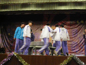 高中的欢乐嘉年华上,穿着华丽的同人堂幽默舞台剧、青春活力动感十足的劲舞社表演、形式新颖的魔术小品都博得了同学们的阵阵呐喊。猜物品、踩气球等游戏得到了大家积极的参与。最后,在读心愿送祝福环节中,同学们感受着对新年和未来的深深祝福。