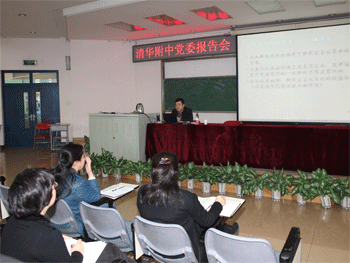报告分文化在中国近现代历史发展中的作用、当前文化建设在全局工作中的战略地位及社会主义核心价值体系引领社会主义文化大发展三个方面,阐述了十七届六中全会提出进行文件体制改革实现文化强国的背景和深远意义。方妍书记最后总结时指出,我们作为党员和教育工作者,第一,要对自己的文化充满自信和自豪;第二,要加强自身的文化修养;第三,要努力实现文化的传承和创新,尤其针对中学生要加强这方面的引导、宣传与教育,使他们树立起正确的文化价值观。