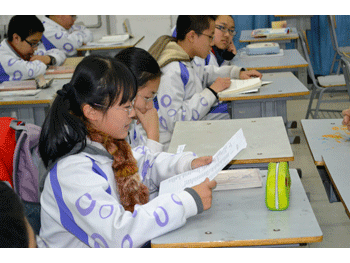 郭大成教授在与同学们交流 同学们现场朗诵