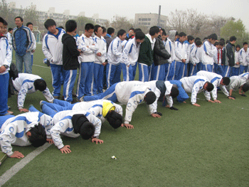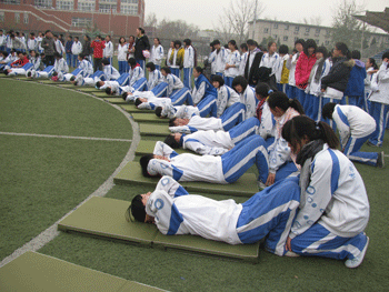 11月24日,澳门博彩在线初三年级(初09级)利用班会时间在操场进行全年级男生俯卧撑、女生仰卧起坐竞赛。此次体育大竞赛活动由体育组陈卫东和王俊林两位老师组织并指挥。初三年级全体班主任,积极协助;同学们热情参与,使比赛圆满完成。