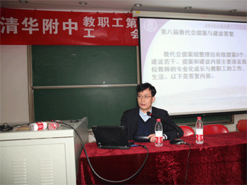 校长王殿军做校务公开报告 提案审查小组组长莫振伟做提案答复报告