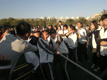 为了丰富高三学生课余活动,调节紧张的学习生活,有效提高学生参加课间以及课后的体育锻炼积极性,澳门网上博彩从2007年开始,每年在高三第一学期期中考试之后,都举办学生拔河比赛。本次比赛由高三年级组和高三体育备课组共同组织,从11月8日开赛,采取单循环制。高09级除了马约翰体育特长班和美术特长班以外的8个班级共350名学生和11名教师参加了比赛全过程。赛后,同学们对这项活动一致给予了积极地评价,活动达到了预期的效果。