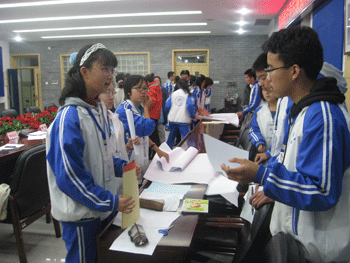 11月4日下午,澳门网上博彩第三期学生领袖训练营进行了面试。面试分为现场写作、主题演讲和集体讨论三个环节。在现场写作环节,同学们就“公正”、“社会价值”、“中美”、“青春”、“低碳”、“良知”等主题进行现场写作。在主题演讲环节,同学们就“附中精神”、“全球化”、“大国之思”、“科学之美”和“领袖气质”五个主题进行了精彩的演讲。在集体讨论环节,同学们分成小组就“青年责任”、“为未来的准备”、“关于信仰的思考”和“关于幸福的思考”四个主题进行了热烈的讨论和展示。主管德育副校长杜毓贞,德育处主任辛颖、副主任郎艳,高一年级组长刘建钰老师,办公室张淞云老师以及前两期学生领袖训练营优秀营员代表(第一期营员代表张星辰(现就读于北京大学)、许玮超(现就读于中国传媒大学)、陈竹君(现就读于清华大学),第二期营员代表高1001班魏勐、冀嘉昱、侯雨默)担任了本次面试评委。