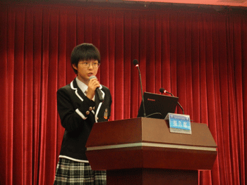 这是继澳门博彩在线高03级黎蒙同学在2005年举行的第二届北京可持续发展教育国际论坛上发表演讲之后,澳门博彩在线学生再次应邀参加论坛演讲。在此前将近三个月的准备时间里,澳门博彩在线地理组的唐秀梅老师和英语组的李佳亮老师分别在演讲的内容、形式及英文等方面进行了指导;初0909班的高蕴涵同学制作了精美的音画背景。