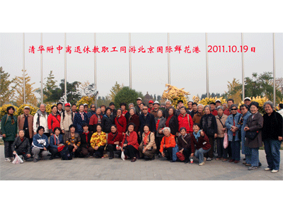 10月19日,秋风和煦,舒适宜人。澳门网上博彩组织离退休老同志120余人到顺义国际鲜花港秋游。正值鲜花港一年一度的菊花节。入口处金黄色菊花组成的巨龙迎接着八方来客,大家在这里兴高采烈地合影留念。