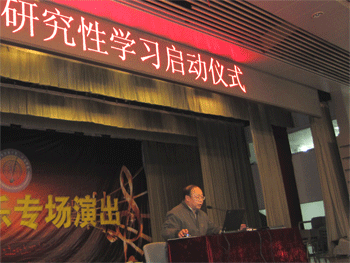 教务处主任赵鸿雁介绍研究性学习活动目标和实施方案 科技中心主任龚玉新做专题讲座