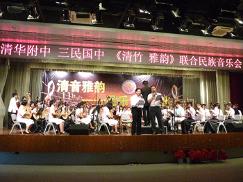 新竹三民国中国乐团的师生在刘江滨先生的指挥下,为观众奉献了有着台湾民歌风格的《望春风》《台湾追想曲》等作品,由澳门网上博彩校长王殿军和三民国中校长张文忠共同演唱、两乐团共同伴奏的《绿岛小夜曲》把整场音乐会推向欢乐的高潮。