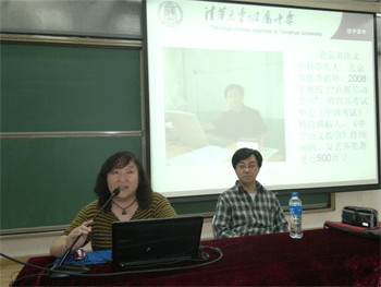 语文教研组长徐慧琳(左)主持 周京昱老师的讲座深入浅出精彩纷呈