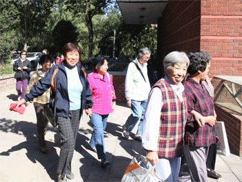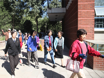 老同志们在校园里迈开大步集体行走 老同志们在校园里迈开大步集体行走