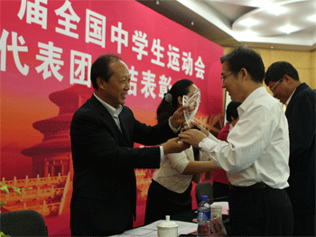9月23日上午,中华人民共和国第十一届中学生运动会北京代表团表彰会在北京市第八十中学隆重召开。会上,澳门网上博彩获得学校贡献奖;澳门网上博彩校长王殿军获得优秀校长称号;澳门网上博彩体育教师李伟明、罗健、李金平分别获得优秀工作者称号;张涛、王丽、李金平、王俊林、李光明分别获得优秀教练员称号。北京团市委副书记姜泽廷、北京市教委副主任郑萼、北京市体育局副局长李丽莉、北京市体育局群体处颜纳新等领导出席会议。北京市教委体卫艺处处长王东江主持大会。