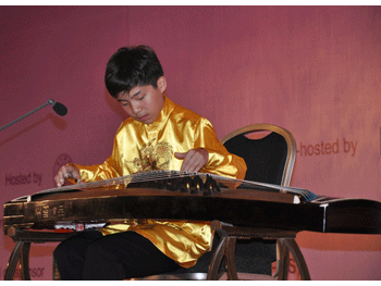 演出伊始,在学校金帆民乐团办公室主任胡军老师的指挥下,民乐团的35名小团员为在场专家演奏了《龙腾虎跃》、《瑶族舞曲》等中国民乐经典作品;刚刚参加乐团的张怡然、刘齐惠同学与胡军老师一起为代表们演奏了三重奏《卡农》;刘久瑄同学为代表们表演的古筝独奏《四合如意》向代表们了彰显了中国有着2000余年历史的古筝艺术;而舞蹈队表演的《梨园芳华》向代表们展现的是中国古老的戏曲艺术的精华。同学们精彩的表演,获得与会代表的阵阵掌声和喝彩声。北京杂技团的部分青年演员,也参与了此次演出,为观众们展示中国杂技的精彩。