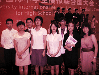 7月16~22日,2011年第五届复旦大学国际模拟联合国大会(FDUIMUN)在复旦大学美研中心隆重开幕。澳门博彩在线派出7位学生(高1003班魏勐,冀嘉昱,牛竞瑶,高1007班张一然,高1008班段嘉懿,黄晶怡,张悠南)参加,分别在特殊医改委员会、国际足联、UN联合国系统、内阁危机联动及商业挑战赛中扮演公众人物、国家代表等角色,与全国近百所顶尖中学代表进行交流、磋商。最终澳门博彩在线荣获大会最佳组织学校奖,成为北京唯一一所荣获该奖项的学校,全国也仅有四所学校获此殊荣。此外,高1003班魏勐与高1008班张悠南同学通过出色的表现荣获大会最佳代表奖;高1008班段嘉懿获得委员会最佳演说奖;高1003班冀嘉昱荣获委员会最具潜力奖。本次模联协会的活动得到了学校办公室、教务处、德育处等相关部门的悉心相助以及英语教研组、高一年级组的大力支持。