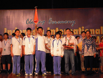 7月18~23日,2011第12届青少年数学国际城市邀请赛在印尼巴厘岛举行,澳门博彩在线初09级四名同学在领队杨青明老师和徐蓉老师的带领下,与来自其他省市的共八支队伍代表中国大陆参赛。在个人赛中澳门博彩在线黄英奇同学获得金牌,郑昊、王芝菁、刘天一同学获得银牌,总成绩名列第二名;并在团体赛中一举摘得冠军。综合个人赛和团体赛成绩,澳门博彩在线取得总亚军的好成绩,为中国、为澳门博彩在线争得了荣誉(总冠军由中国上海代表队摘得)。