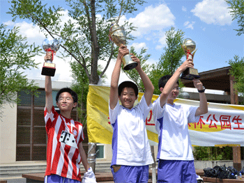 获得冠、亚、季军班级代表领取奖杯 获得优胜奖班级代表领取奖状